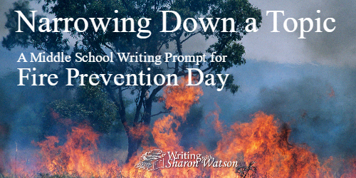 Now it’s your turn: So many natural disasters are happening around to world today; you have your choice of them. Also, October 9 is Fire Prevention Day, so you could use the subject of fire, if you wish. Narrow down the subject of fire (or another you are interested in), just as I did with the topic of natural disasters. Because you are brainstorming, write down everything you think of, whether it is silly or serious. You never know what idea will spark another one that you can actually use.